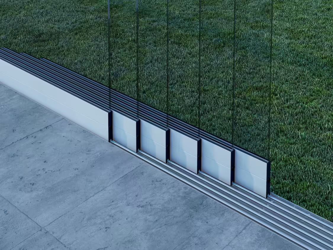 -Glasprofile inkl. Gummi, 2 Sets doppelt gelagerter Nylonräder und Aluminium- Seitenabdeckungen